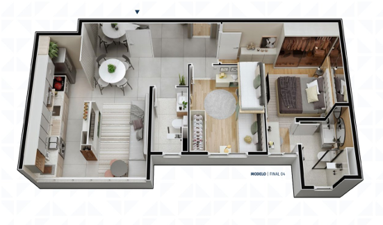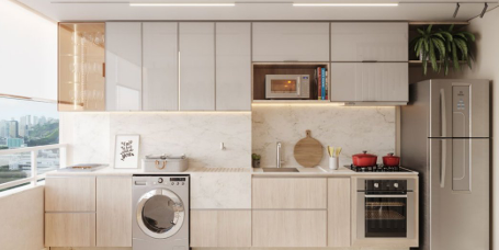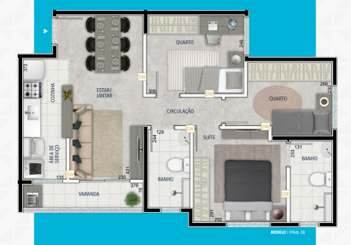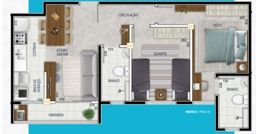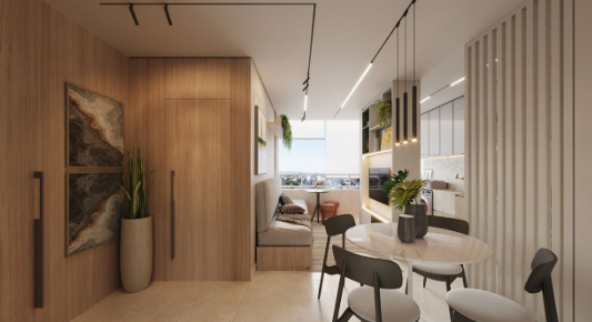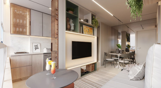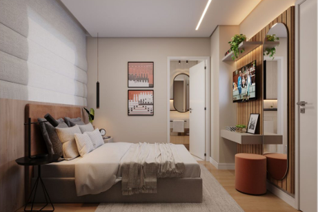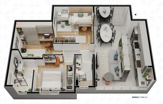 Unidades modernas e bem distribuídas, com opções de 2 quartos (sendo 1 suíte), varanda, banheiro social, sala para 2 ambientes, cozinha americana integrada e área de serviço e de 3 quartos (sendo 1 suíte), banheiro social, sala ampla para 2 ambientes, varanda, cozinha funcional e área de serviço.